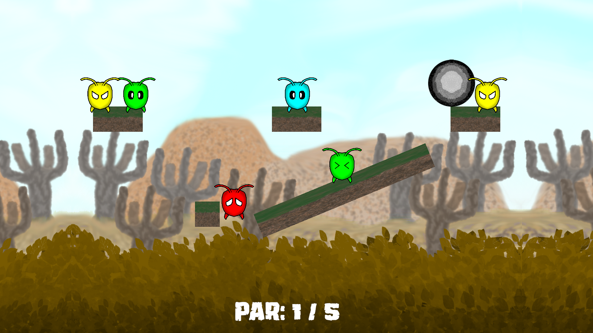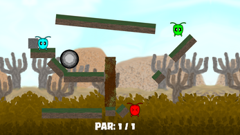 In this 2D physics puzzle game, you can spawn the queen by clicking anywhere on your screen. Throughout 20 levels, you must knock all red ants off the screen while keeping the green ones on the screen. The queen must never fall off the screen, otherwise you'll lose (unless you need to restart).