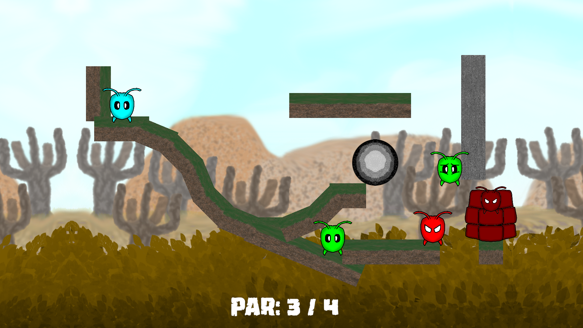 You may think this is just a SIMPLE physics puzzle game. However, the red ant colony are reinforcing their army by recruiting some fire ants (which will explode when touched by other ants including its kind), as well as some very tough ants equipped with armor (they cannot be pushed by anything except for large boulders their size).